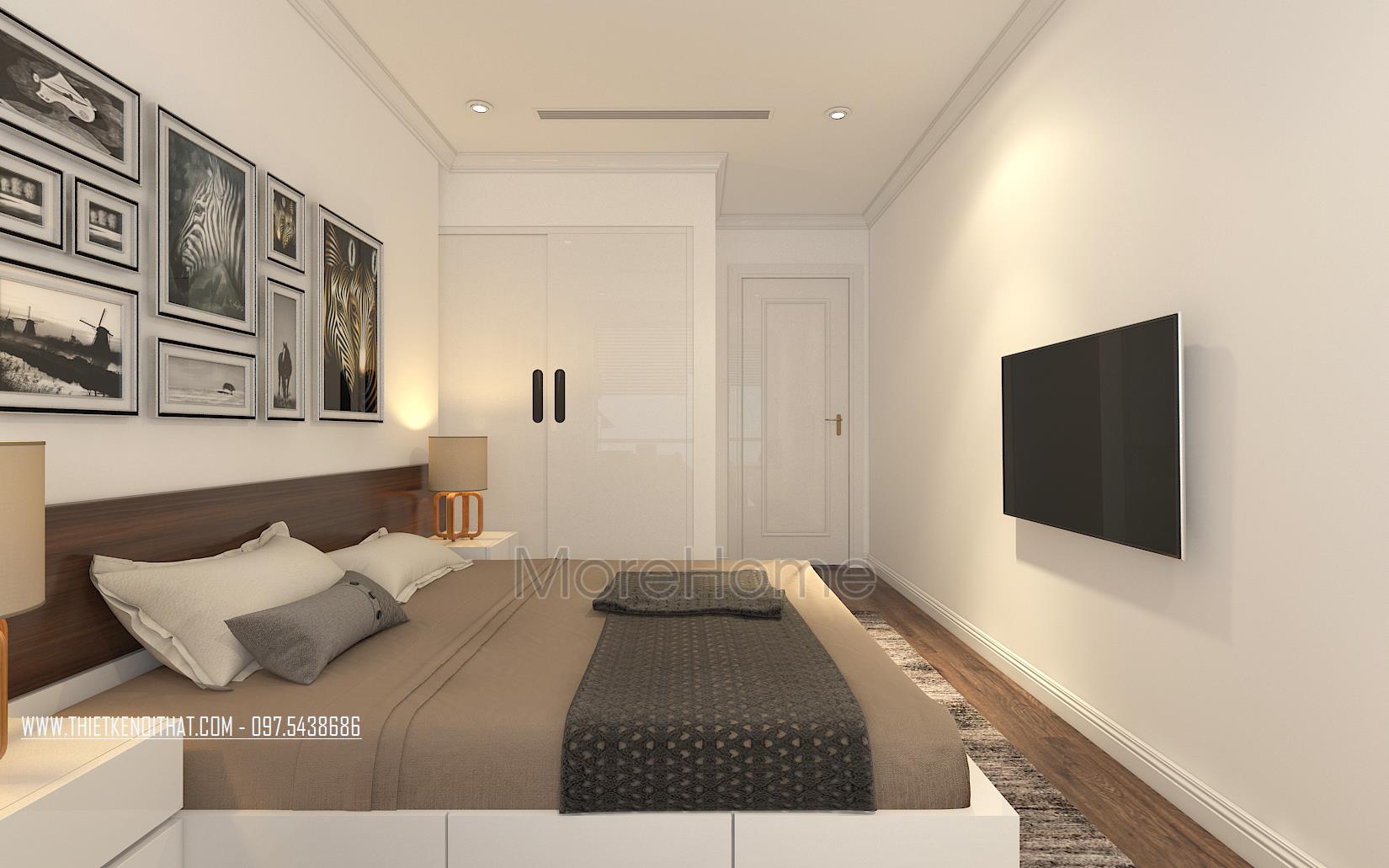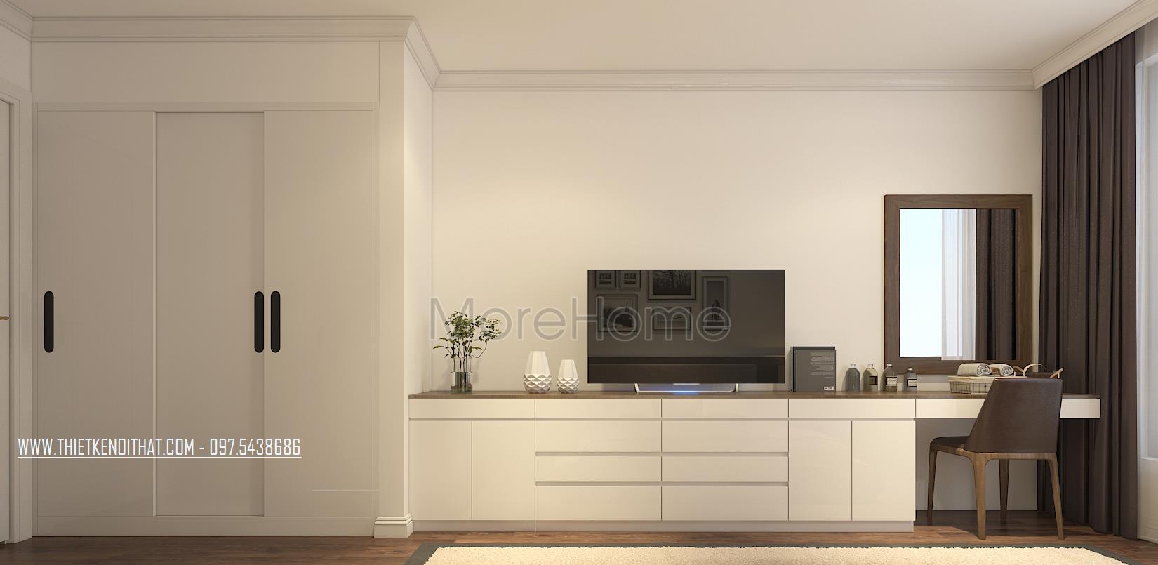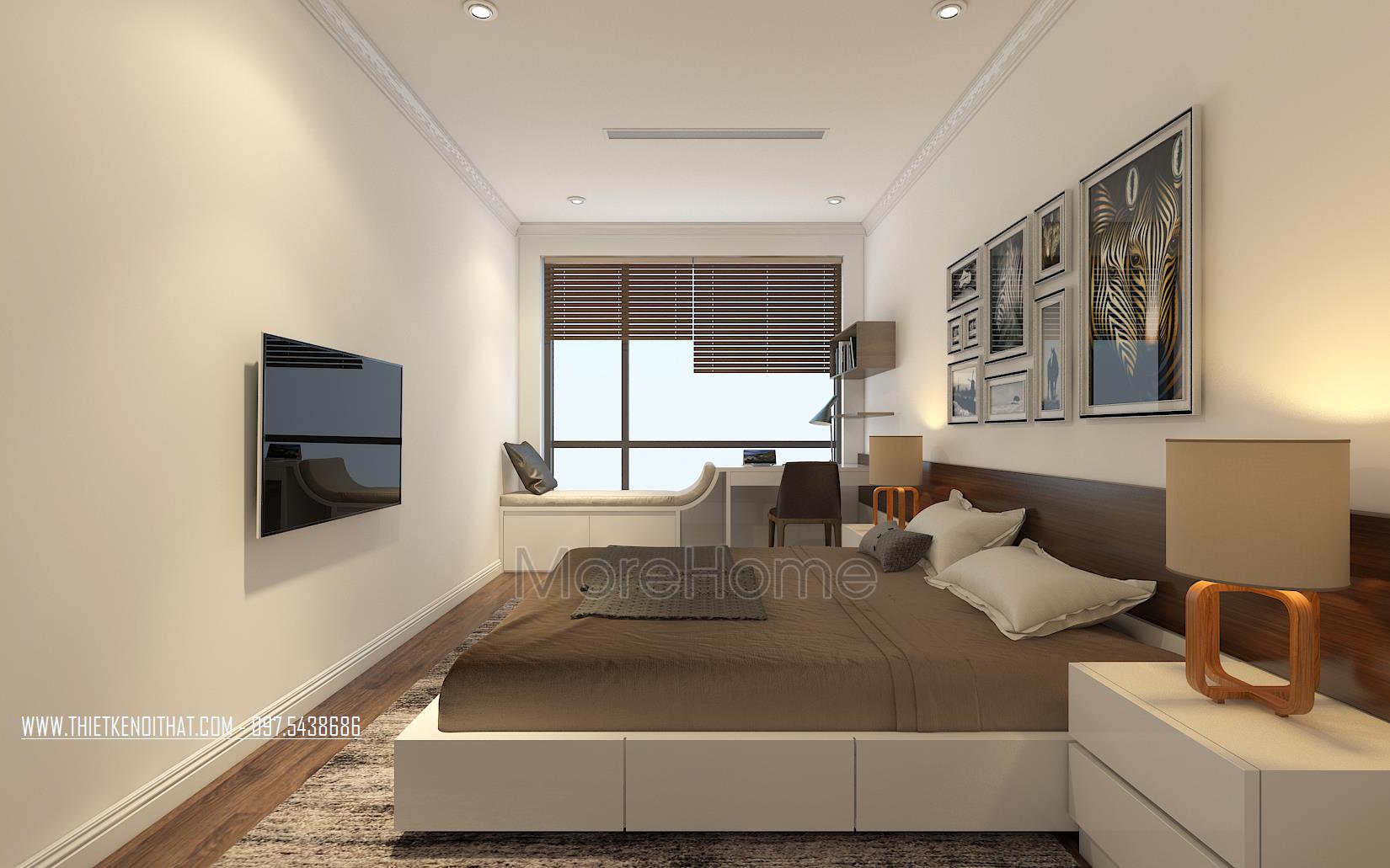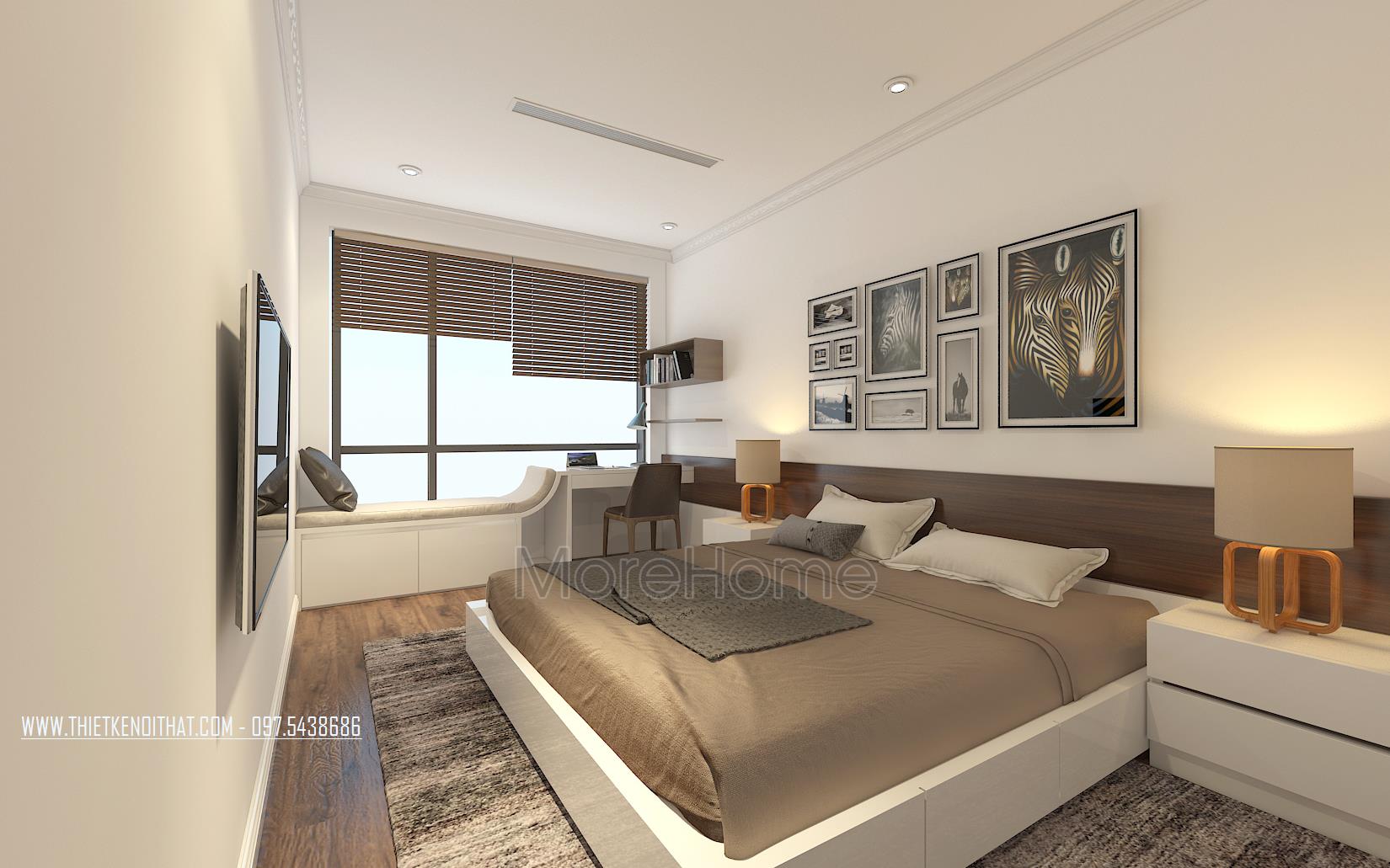 Cuối cùng là thiết kế nội thất phòng ngủ hiện đại, tone màu ghi xám, nâu ấm hay trắng vẫn là các tone màu được kiến trúc sư ưu ái sử dụng. Điểm nhấn đặc biệt ở không gian này có lẽ chính là thiết kế kết hợp khéo léo giữa tủ gỗ, kệ, và giá để đồ, với sự kết hợp khéo léo như vậy, kiến trúc sư dễ dàng điều phối không gian, vừa đảm bảo tính thẩm mỹ vừa giúp tiết kiệm không gian cho gia chủ. Ánh sáng tự nhiên cũng được tận dụng từ khung cửa sổ kính cường lực trong suốt giúp mang lại hứng khởi và sự tươi mới cho không gian.