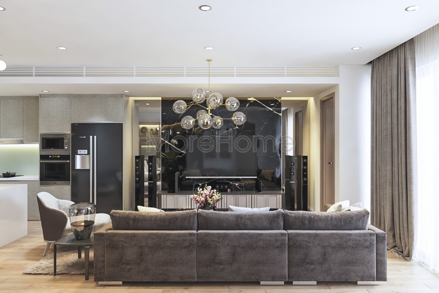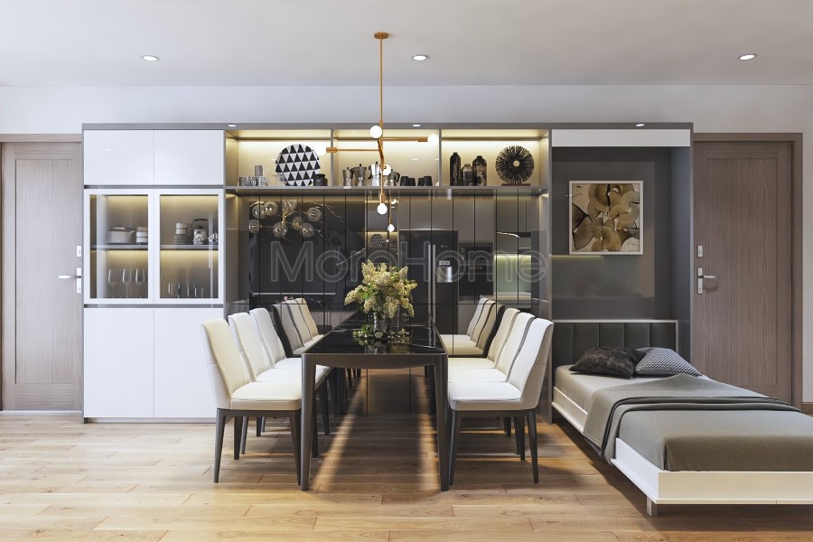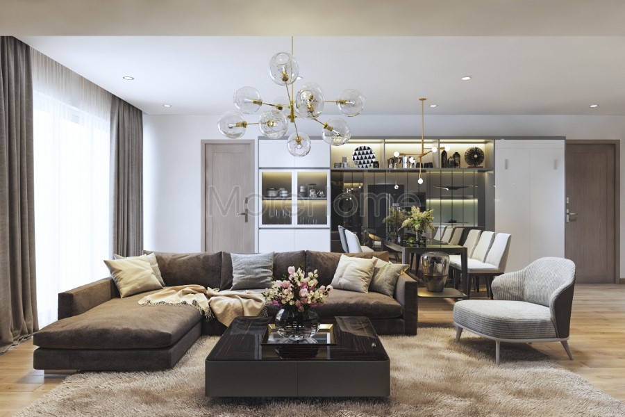 Thiết kế căn hộ chung cư Đảo Kim Cương - Quận 2 theo phong cách hiện đại, đơn giản với tone màu trầm.