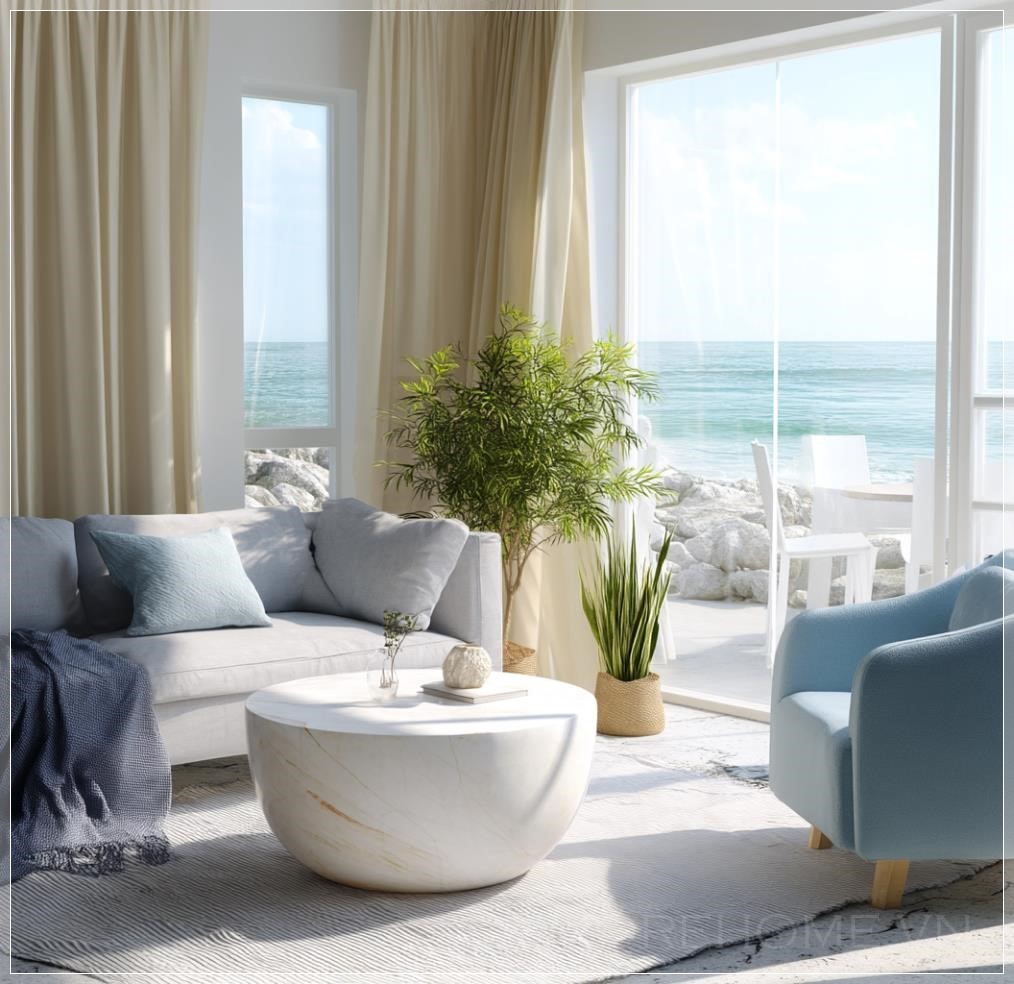 Căn phòng khách ven biển này là minh chứng hoàn hảo cho việc thiết kế nội thất không chỉ là về việc chọn lựa đồ đạc và màu sắc, mà còn là nghệ thuật tạo nên không gian sống thể hiện cá tính, ước mơ và lối sống của chủ nhân. Nó là nơi mà mỗi ngày trôi qua đều trở nên đáng nhớ, mỗi khoảnh khắc đều trở thành một phần của câu chuyện cuộc đời.
