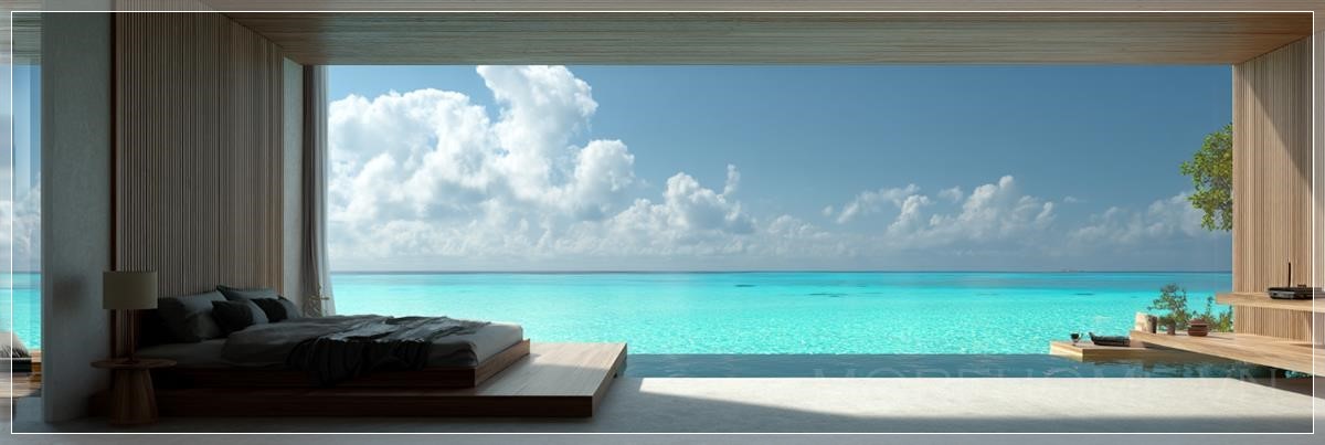 Khi ánh nắng đầu tiên xuyên qua những đám mây trắng phau, chiếu rọi xuống nền gỗ tự nhiên của căn phòng ngủ sang trọng này, chúng ta như được chứng kiến một tác phẩm nghệ thuật sống động giữa lòng thiên đường nhiệt đới. Đây không chỉ là một không gian nghỉ ngơi thông thường, mà là hiện thân hoàn hảo của triết lý thiết kế tối giản trong bối cảnh xa hoa nhất trên thế giới.