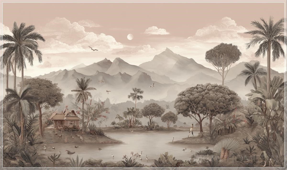 Tropical scenery được thể hiện qua những hình ảnh cây cối tươi tốt, chim muông bay lượn và những chi tiết tự nhiên được stylized một cách nghệ thuật. Mỗi bức tường trở thành một tác phẩm nghệ thuật sống động, kể câu chuyện về vẻ đẹp hoang dã được thuần hóa bởi bàn tay tài hoa của các nghệ nhân Anh Quốc.