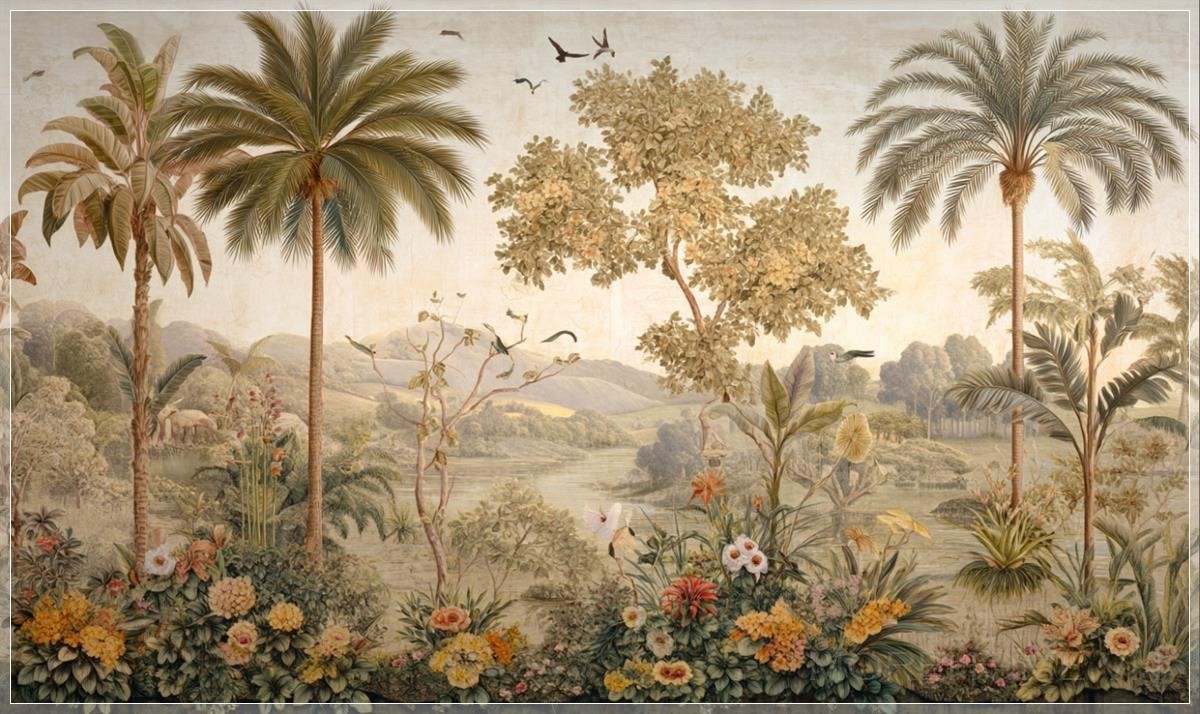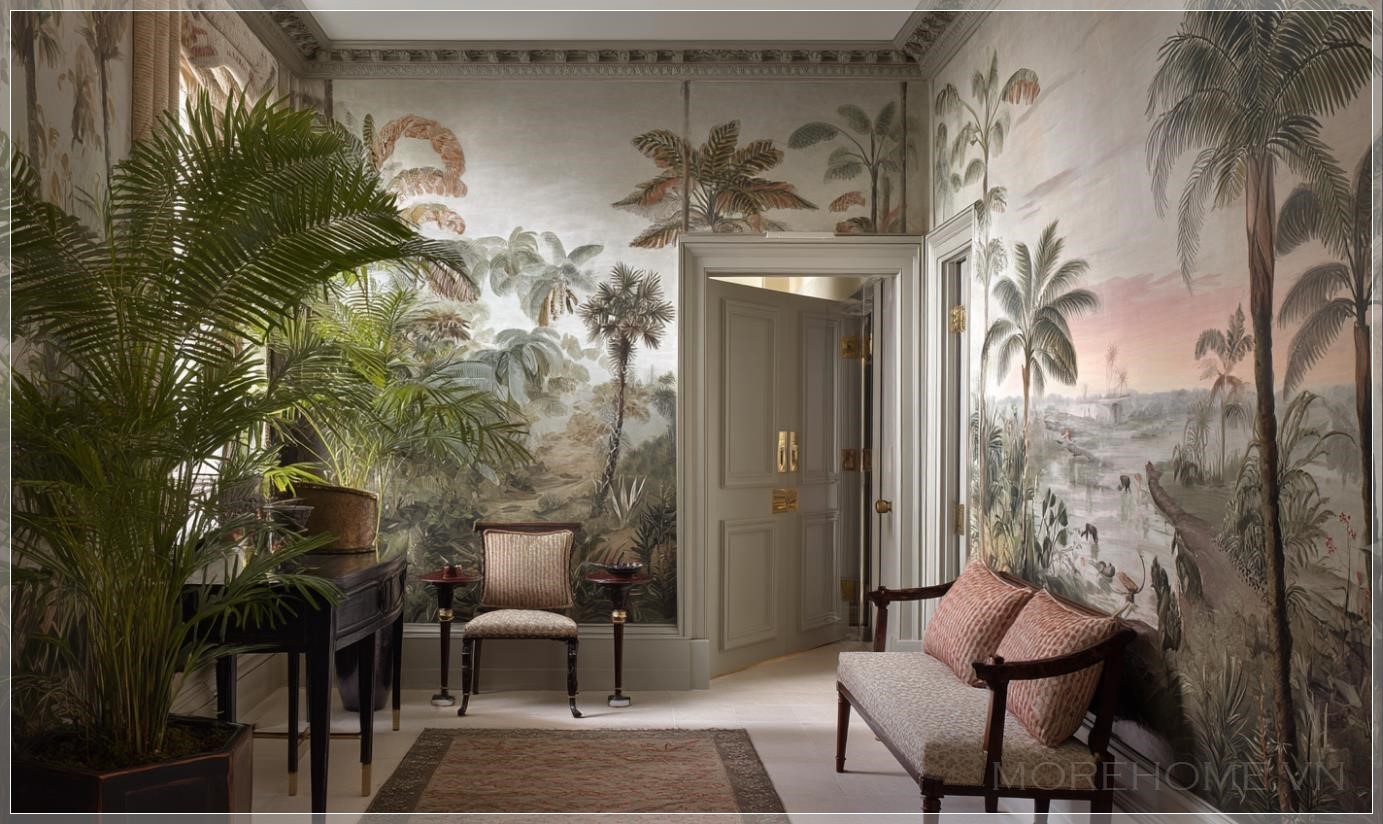 Thiết kế exotic độc đáo là điểm nhấn khiến những tấm wallcovering này trở nên đặc biệt. Chúng mang đến cảm giác như đang lạc vào một khu vườn nhiệt đới bí ẩn, nơi ánh sáng lung linh qua tán lá xanh mướt, tạo nên những khoảnh khắc thơ mộng khó quên. Sự kết hợp tinh tế giữa yếu tố truyền thống Anh và hương vị nhiệt đới tạo nên một phong cách trang trí vượt thời gian.