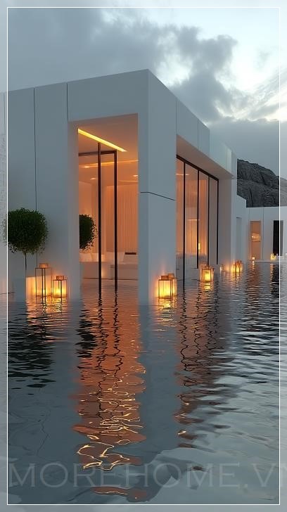 Hình ảnh một ngôi nhà bồng bềnh trên mặt nước phản chiếu, được bao quanh bởi khung cảnh siêu thực như tranh vẽ, đã khiến chúng ta phải suy ngẫm về bản chất của không gian sống. Đây không phải là một công trình kiến trúc thông thường - đây là điêu khắc sống động, là poetry được thể hiện qua bê tông và ánh sáng.