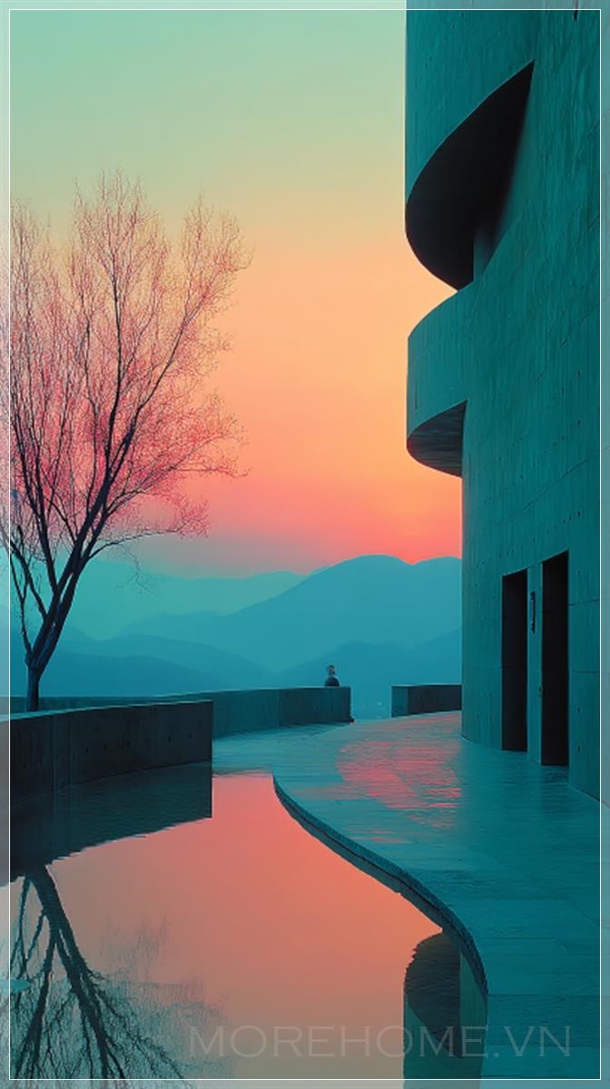 Những đường cong mềm mại của bê tông tạo nên một ngôn ngữ kiến trúc hoàn toàn mới. Không còn những góc cạnh cứng nhắc của kiến trúc truyền thống, mà thay vào đó là những đường nét uyển chuyển như dòng chảy của tự nhiên. Mỗi bề mặt cong đều kể một câu chuyện riêng, tạo nên một symphony thị giác đầy mê hoặc.