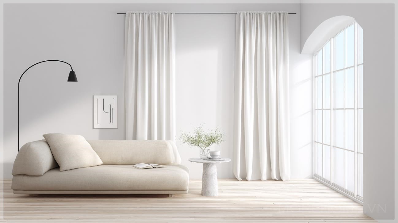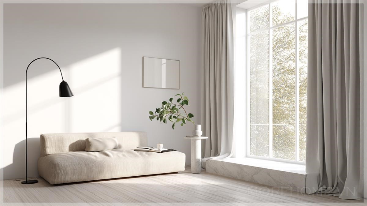 Bước vào một căn phòng khách theo phong cách Scandinavian, điều đầu tiên bạn cảm nhận được chính là sự bao trùm của ánh sáng tự nhiên. Khung cửa sổ từ sàn lên trần cao vút như một bức tranh khổng lồ, đóng vai trò là trung tâm của toàn bộ không gian. Những tấm rèm trắng đơn giản, không họa tiết, được kéo một bên để tạo ra những nếp gấp tự nhiên mềm mại, trong khi bên kia được đóng lại một cách hoàn hảo. Đây không chỉ là sự sắp xếp ngẫu nhiên, mà là một tuyên ngôn về cách người Scandinavian tôn trọng và khai thác ánh sáng tự nhiên.