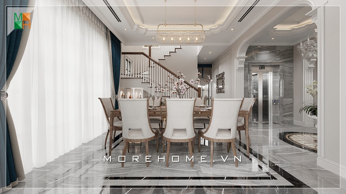 Bố trí phòng ăn đẹp cho không gian biệt thự tân cổ điển